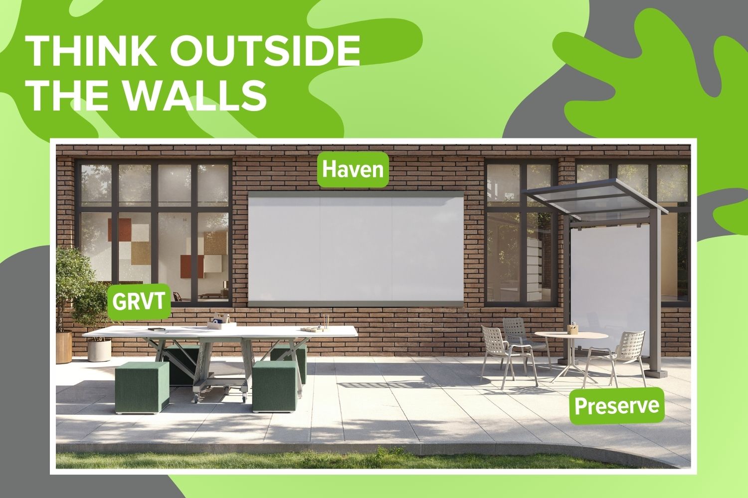 A weather-ready outdoor glassboard designed for schools, public spaces, healthcare patios, and outdoor meeting areas. Haven is perfect for retrofitting existing spaces, as well as planning for new construction.